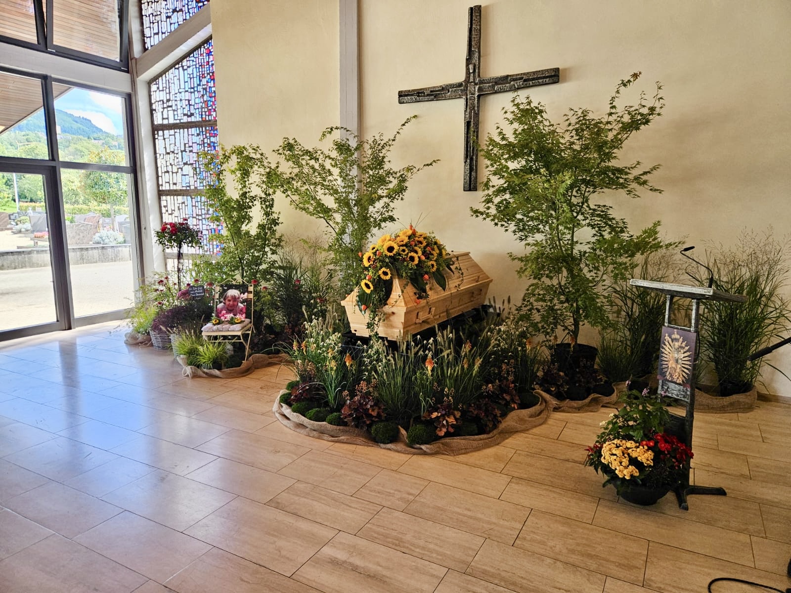 Abschied gestalten - heute haben wir den Wunsch der Familie erfüllt und ihre geliebte Tochter noch einmal nach Hause gebracht - ein kurzer Stopp in der Heimat, mitten in den Reben, mit tollen Weitblick. Der ausgewählte „Trieble“ Rebensarg und das passende Blumengesteck mit einem altem Rebstock rundeten die wunderschön gestaltete Beerdigung ab. Mach’s gut, gute Reise.